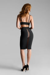 Der Bleistiftrock aus der Kollektion Nuit Infinie besticht durch seinen figurbetonten Schnitt und die hohe Taille. Die rückseitige Schnürung, die durch einen Stopper angepasst werden kann, sorgt für eine präzise Passform und setzt ein unverwechselbares grafisches Statement. Die Midi-Länge verleiht dem Design eine elegante und zeitlose Ausstrahlung, ideal für Tages- oder Abendoutfits.