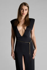 Its golden finish catches the light with intensity, dressing the body like a second skin. Worn alone against the skin, or layered for a sensual contrast over a sheer chiffon shirt or a black lace bodysuit.