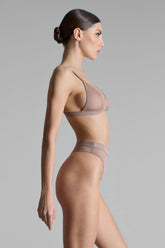 Der High Waist-String in der Nude besteht aus einem weichen Tüll mit schillernder Transparenz.