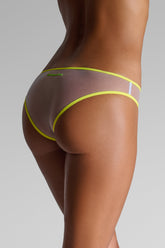 Briefs in transparent pastel tulle, highlighted with ultra-flat fluorescent elastic at the waist. Light and comfortable cut. Contrasting Maison Close logo at the back. No cotton lining for complete transparency.