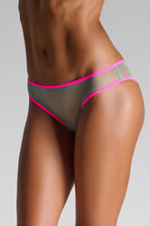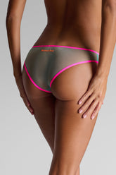 Briefs in transparent pastel tulle, highlighted with ultra-flat fluorescent elastic at the waist. Light and comfortable cut. Contrasting Maison Close logo at the back. No cotton lining for complete transparency.
