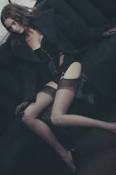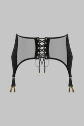 ROCOCO garter belt inspired by corsetry, designed to structure the waist like a belt of seduction. Flexible steel boning creates a contoured fit and keeps the piece close to the body.