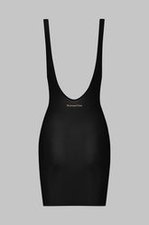 Kurzes Kleid mit breiten Träger aus feinem Jersey mit glänzenden Reflexen und leicht transparenter Optik. Eng anliegender Schnitt und flaches, bequemes Gummiband. Das Dekolleté, der tiefe Armausschnitt und der atemberaubende Neckholder erinnern an die 90er Jahre. Auf der Rückseite befindet sich das goldene Maison Close-Logos.