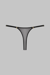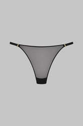 Der Mini-String in der Farbe Schwarz besteht aus einem weichen Tüll mit schillernder Transparenz.