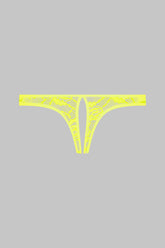 Das offene Höschen in Neonfarben ist mit Lochspitze verziert, die größtenteils aus recyceltem Material gefertigt wird. Das Höschen hat auf der Rückseite einen verführerischen, herzförmigen Po-Ausschnitt mit einem flachen Gummiband.