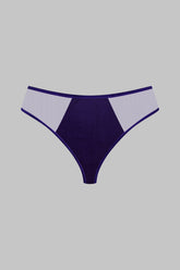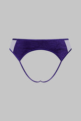 ROCOCO open brief playing with transparency and graphic lines. Two structured cut-outs shape the front, while ultra-sheer tulle subtly reveals the hips. At the back, a daring opening highlights the curves, framed by a velvet elastic that contours the buttocks. This piece is worn as a bold seduction accessory, to be paired with the corsets and bustiers from the ROCOCO line.