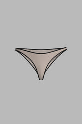Panty in ultra-fine microfiber with a second-skin effect. The smooth, lightweight fabric is almost imperceptible, offering discreet fluidity. The edges are trimmed with contrasting ultra-flat elastic that outlines the silhouette without constraint. At the back, the Maison Close logo in relief signs the piece with a graphic touch.