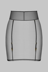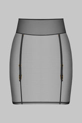 Kurzer Rock mit Strumpfhaltern aus absolut transparentem Tüll. Gefütterter Bund für einen perfekten Sitz an der Taille. Quer verlaufende Nähte, um die abnehmbaren Strumpfhalter zu begleiten. Halbrock zum Tragen über anderen Modellen der Kollektion oder als Unterrock.