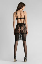 Ein eleganter Rock, der Ihre Kurven in Szene setzt. In Kombination mit einem String-Body und unseren halterlosen Strümpfen mit Rollschnitt Tag und Nacht tragbar.