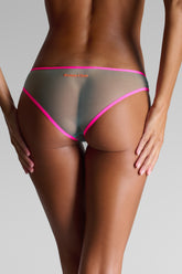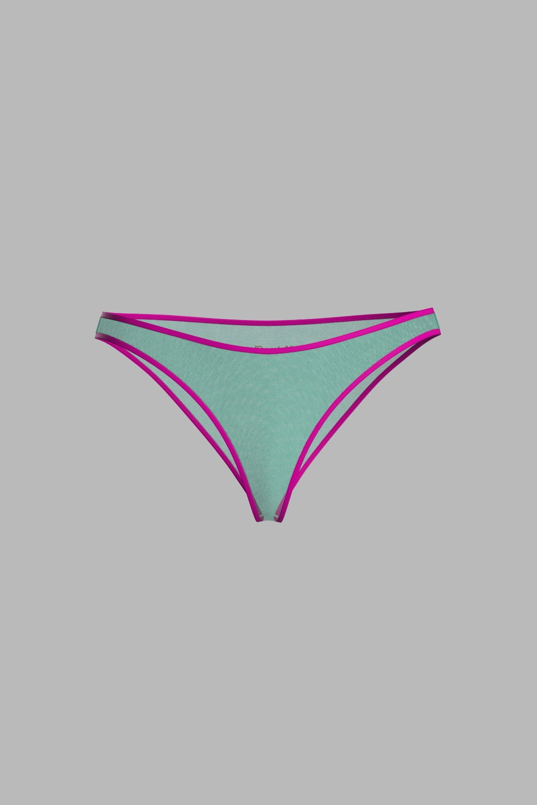 Set of 2 briefs in sheer pastel tulle, accented with an ultra-flat fluorescent elastic waistband. A light, comfortable cut. Contrasting Maison Close logo at the back. No cotton lining for total transparency.