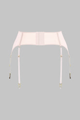 Strumpfhaltergürtel aus absolut transparentem Tüll. Vorne gefütterter Lochtüll für einen Kontrast zwischen Transparenz und Opazität 6 verstellbare, nicht abnehmbare Strumpfhalter strukturieren den oberen Teil der Beine. Glatter, dezenter Häkchenverschluss im Rücken.
