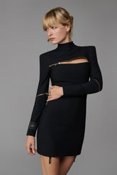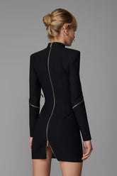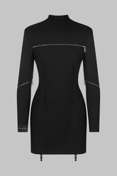 The dress is embellished at the neckline and elbows with openable gold-tone metal zips and a two-way zip fastening at the back to ensure a perfect fit and elegantly emphasise your curves. The high neck and straight sleeves give this dress a sophisticated look.