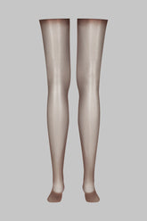 Maison Close's signature cut and curled stockings. Sheer 20 denier brown voile.