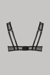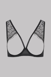 Cupless bra in recycled lace. Shape combining an eyelash lace with see-through tulle edged with picot elastic. The underwiring is covered with tulle. Double adjustable elasticated straps and adjustable hook-and-eye fastening on the back.