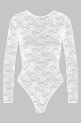 This thong bodysuit is embellished with mostly recycled openwork lace. With its flat elasticated trim, the high-leg design emphasises the hips for an '80s style. Adjustable hook-and-eye fastening at the crotch.