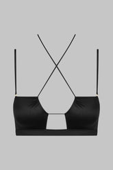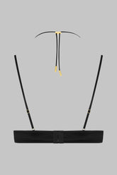 Bra without underwire, combining satin softness and style. The seamless molded cups are elegantly structured by pleating at the neckline. The neck lacing, repositionable and adjustable thanks to a unique adjuster and golden lipstick accessories by Maison Close, sublimates your cleavage while allowing customization according to your desires. The thin, flat, adjustable straps ensure a perfect fit. An elastic band around the bust hugs and shapes the bust perfectly. Adjustable hook and eye closure at the back.