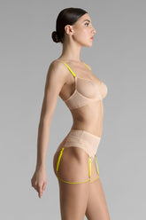This underwear comes with two sets of removable and adjustable straps: a pair of neon green straps and a pair of nude straps to switch depending on the mood of the day.