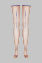 Maison Close's signature cut and curled stockings. Nude with blue seams that match CORPS À CORPS NÉON collection.