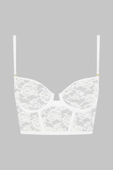 This balconette bra features mostly recycled openwork lace. Underwired cups that fit and shape the breasts perfectly. Bustier design with flexible vertical boning in the front and back. Fastens at the back with a smooth, subtle adjustable clip. Signature adjustable and removable straps with gold accessories. Swap whenever you like with any other Signature straps available in various colours. An opportunity for each Muse to create their own unique mix and match.