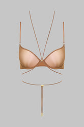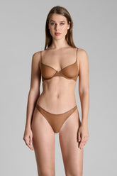 Underwired balconette bra crafted from fine jersey with subtle transparency and a luminous sheen. Designed to perfectly follow the shape of the bust with seamless molded cups. The neck lacing, fully removable and adjustable thanks to a unique slider and Maison Close’s signature gold lipstick accessories, enhances your cleavage while allowing full customization. Delicate flat adjustable straps ensure a flawless fit. Adjustable hook-and-eye fastening at the back.