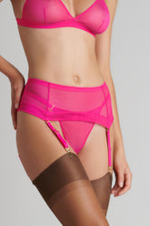 This garter belt with its neon colours features soft tulle with a sheer iridescent appearance.