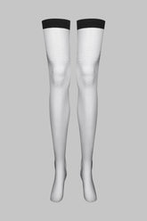 These exquisitely fine, lustrous hold-up garter stockings elegantly accentuate your legs. As they are not reinforced at the feet, you can openly wear sandals with heels. Held in place by a Maison Close suspender belt, they elongate the silhouette without leaving any marks. Wear at the top of the leg for an ultra-chic, confident look. Made in Italy in a workshop known for its excellence.