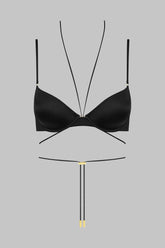 Half-cup bra with underwire, combining satin softness and style. Designed to perfectly fit the shape of the breasts thanks to its seamless molded cups. The neckband lacing, totally removable and adjustable thanks to a unique adjuster and golden lipstick accessories signed Maison Close, sublimates your cleavage while allowing customization according to your desires. The thin, flat, adjustable straps ensure a perfect fit. An elastic band around the bust hugs and shapes the bust perfectly. Adjustable hook and eye closure at the back.