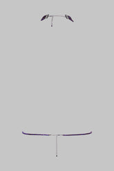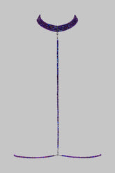 A jewelled creation made from deep purple faceted glass beads, the ‘À ton cou’ harness reflects the light as you move. The collar and waist are linked by a removable harness, which makes them adjustable. The black metal adjustment chains allow you to vary your looks.