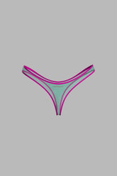 Thong in transparent pastel tulle, outlined with ultra-flat fluorescent elastic. A high-cut 80s-style silhouette that elongates the legs. Maison Close logo in relief at the back. No cotton lining for complete transparency.