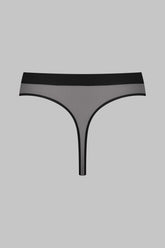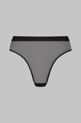 This black colour high-rise thong features soft mesh with a sheer iridescent appearance.