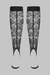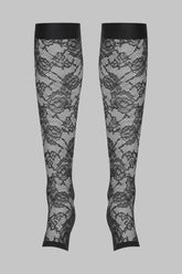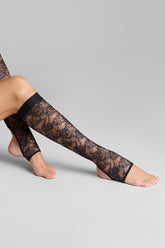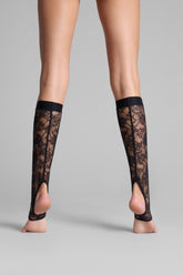 These legwarmers are made from mostly recycled openwork lace. Fitted style with flat elasticated trim. Scalloped opening at the back of the leg. Open toes.