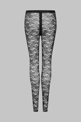 These leggings feature mostly recycled openwork lace. A wide waistband edged with a flat elasticated trim emphasises the curves for an '80s style.