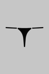 Minimalist mini thong with a unique feel. Stretchy, ultra-soft, lightweight ribbed modal that stretches and has a sheer, shiny sheen. Featuring 2 modal-covered non-removable elasticated straps with adjustable silver trim. Cotton-lined crotch.