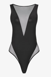 Its form-fitting, high-cut thong-style silhouette hugs the curves with precision. A plunging V neckline and a full tulle back create a graphic, ultra-feminine effect. Deep armholes and soft elastics ensure a comfortable fit. Designed for easy slip-on wear, this swimsuit is lined at the gusset.