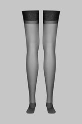 Held in place by a Maison Close suspender belt, they elongate the silhouette without leaving any marks.