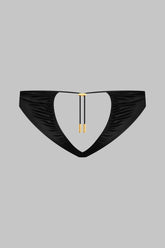Open briefs, combining satin softness and style. Designed to elegantly reveal a pretty heart buttocks. The opening, adorned with pleated lacing, perfectly shapes the buttocks and allows a personalized fit thanks to a unique adjuster and gold lipstick accessories signed Maison Close.