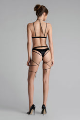 Open briefs combining satin softness and unique style. A set of lacing on the sides is adjustable thanks to a unique adjuster and gold lipstick accessories signed Maison Close to adjust according to your desires, around the legs or around the waist. The jockstrap-effect elastics are adjustable with gold accessories.