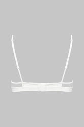 The bralette – Pure Tentation reimagines the concept of visual comfort. Its two-material construction blends sheer tulle brushing the bust with opaque microfiber panels that contour the silhouette. An oval cutout offers a delicate suggestion. Wireless yet shaped by bust darts, it provides light support, ideal for daily wear or layering. Thin adjustable straps ensure a perfect fit, and it fastens at the back with a hook-and-eye closure.