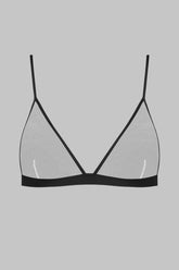 The triangle bra – Pure Tentation reveals the body with intentional delicacy. Its two-material construction blends sheer tulle over the bust with opaque microfiber cutouts. Wireless, it offers a second-skin feel, enhanced by bust darts for a naturally tailored fit. Thin straps are adjustable, and it fastens discreetly at the back with a hook-and-eye closure.