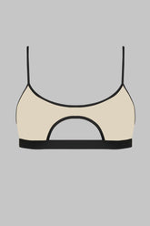 The bralette Pure Tentation reimagines the concept of visual comfort. Its two-material construction blends sheer tulle brushing the bust with opaque microfiber panels that contour the silhouette. An oval cutout offers a delicate suggestion. Wireless yet shaped by bust darts, it provides light support, ideal for daily wear or layering. Thin adjustable straps ensure a perfect fit, and it fastens at the back with a hook-and-eye closure.