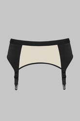 The garter belt Pure Tentation wears like a statement of character. Its two-material construction, blending sheer tulle and opaque microfiber, creates a subtle contrast. The elastic waistband ensures a flexible, comfortable fit, while the fine, non-removable adjustable garters extend the body’s line down to the accessories. Fastens at the back with a hook.