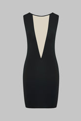 The V-neck Minuit dress Pure Tentation is a piece of pure suggestion. Its short cut leaves the legs bare, while the deep V-neckline and ultra-sheer back rewrite the rules of seduction.