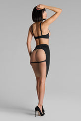The skirt Pure Tentation blurs the lines between lingerie and outerwear. In sheer tulle and opaque microfiber, it lays over the skin like a graphic veil, subtly reshaping the curves. Halfway between garment and performance, this skirt challenges conventions. Sheer at the back, it plays with what it reveals and conceals. An elastic waistband ensures a secure fit, while an adjustable, removable back strap adds an unexpected touch—ready to suit the moment or the mood.