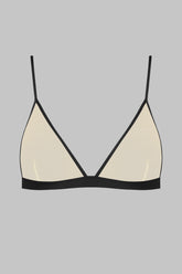 The triangle bra Pure Tentation reveals the body with intentional delicacy. Its two-material construction blends sheer tulle over the bust with opaque microfiber cutouts. Wireless, it offers a second-skin feel, enhanced by bust darts for a naturally tailored fit. Thin straps are adjustable, and it fastens discreetly at the back with a hook-and-eye closure.