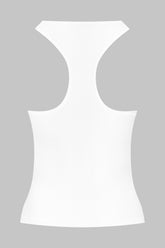 Minimal tank top with a unique feel. Stretchy, ultra-soft, lightweight ribbed modal that stretches and has a sheer, shiny sheen. This is a genuine tank top with a snug fit, racer back and scoop neck at the front.
