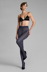 OBSESSION 40D semi-opaque tights, designed to elongate the leg and capture light with precision. Their 40 denier veil, with controlled sheen, adorns the skin with a smooth and elegant finish – a delicate balance between subtle transparency and comfortable coverage.