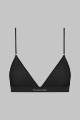Triangle bra wireless. Crafted from fine jersey with shiny and subtly transparent highlights, it is edged with ultra-flat elastic invisible under clothing. The Maison Close golden logo signature is displayed between the cups on a wide elastic band that provides support. Back closure with a smooth, adjustable hook-and-eye. Fine adjustable, non-removable straps with golden hardware.