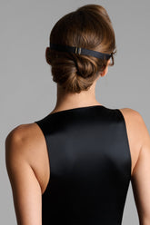 Its exclusive rigid mold, wrapped in sumptuous black velvet inside and out, delicately follows the contours of the face for a perfect fit. Designed to suit all body types, this unisex, one-size model is adjustable thanks to its black elastic strap.