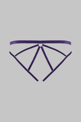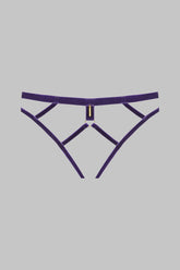 The VELVET SET purple open panty plays on purity and provocation. Crafted from soft-touch velvet, it reveals an open structure with a refined geometric design, adorned with a golden Maison Close-engraved charm. Designed to be worn on its own or attached to the matching harness, it creates the illusion of a bodysuit. Fully adjustable, it hugs the body with precision and subtlety. A trompe-l'œil lingerie piece — minimal and graphic.