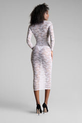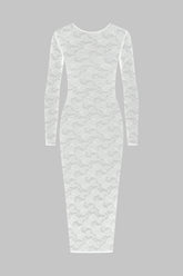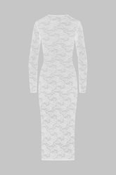 This long-sleeved dress features mostly recycled openwork lace. Fitted style with flat elasticated trim. The midi length accentuates your curves for a confident '80s style.